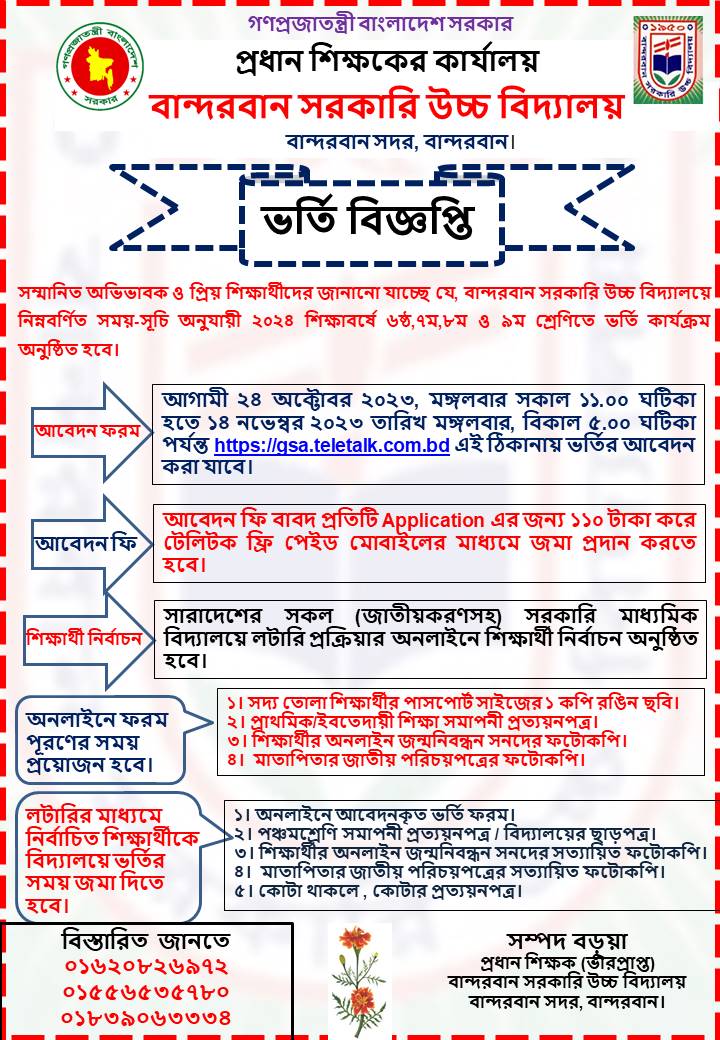 20-Oct-2023 ভর্তি বিজ্ঞপ্তি